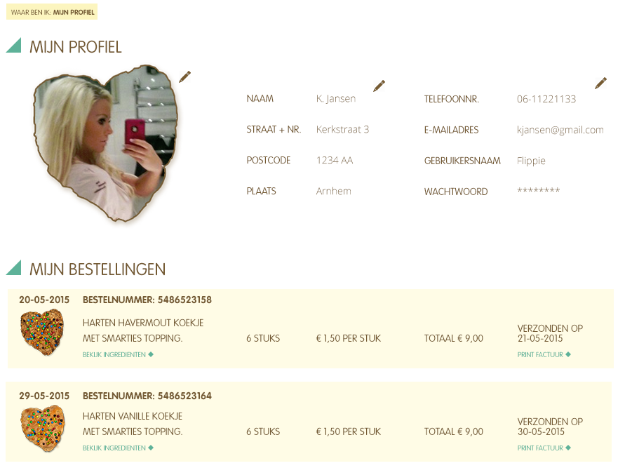 Ontwerp koekje Overzicht Over ons Contact